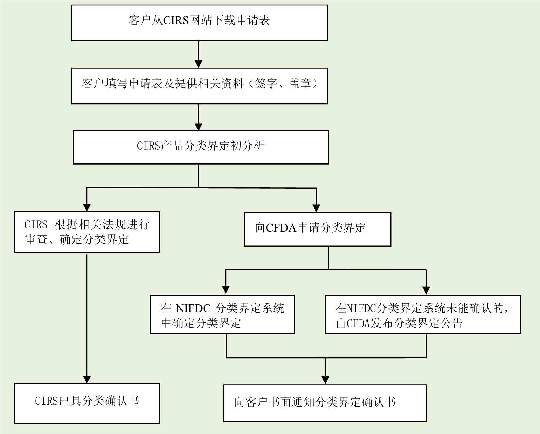 向CFDA申请产品分类界定,并跟踪分类界定结果,及时向企业发送书面的“医疗器械分类界定报告”