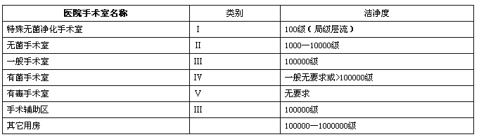 洁净手术室类别及等级参考